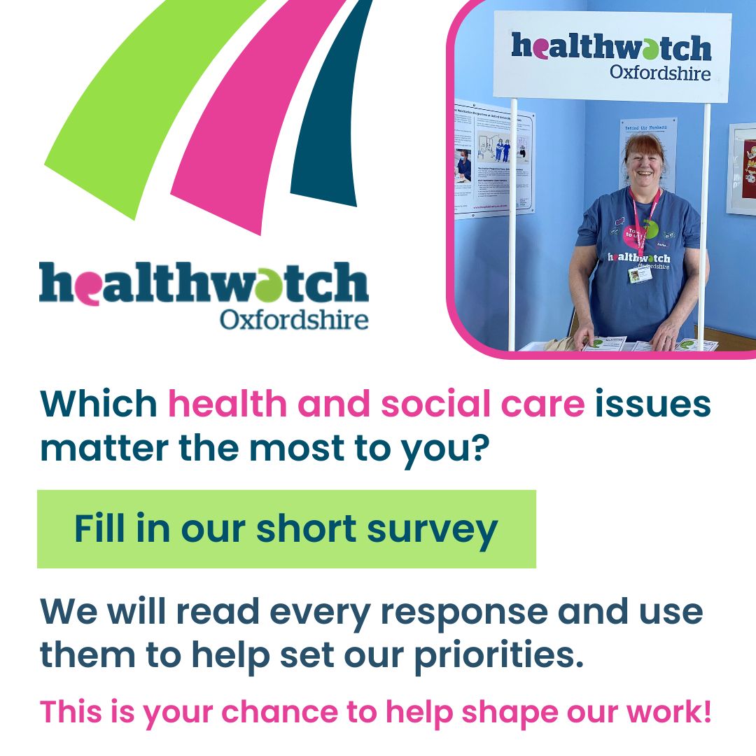 Healthwatch Oxfordshire would like to hear your views on what areas of health and social care you think they should focus on over the next year. They would also like your ideas on topics for public health and care webinars.